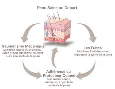 Les effluents sont corrosifs pour la peau. En retour, cela peut rendre plus difficile la bonne mise en place du protecteur cutané sur la peau. Si votre appareillage ne s'adapte pas bien autour de votre stomie, il peut en résulter des fuites. Une adhérence compromise peut entraîner d'autres fuites et des lésions cutanées. Une mauvaise adhérence ou un champ protecteur mal ajustés peuvent entraîner des changements de protecteur cutané très fréquents, ce qui peut occasionner des lésions d’arrachage. C'est un cercle vicieux qui devient plus difficile à résoudre proportionnellement à la sévérité de la CPP.